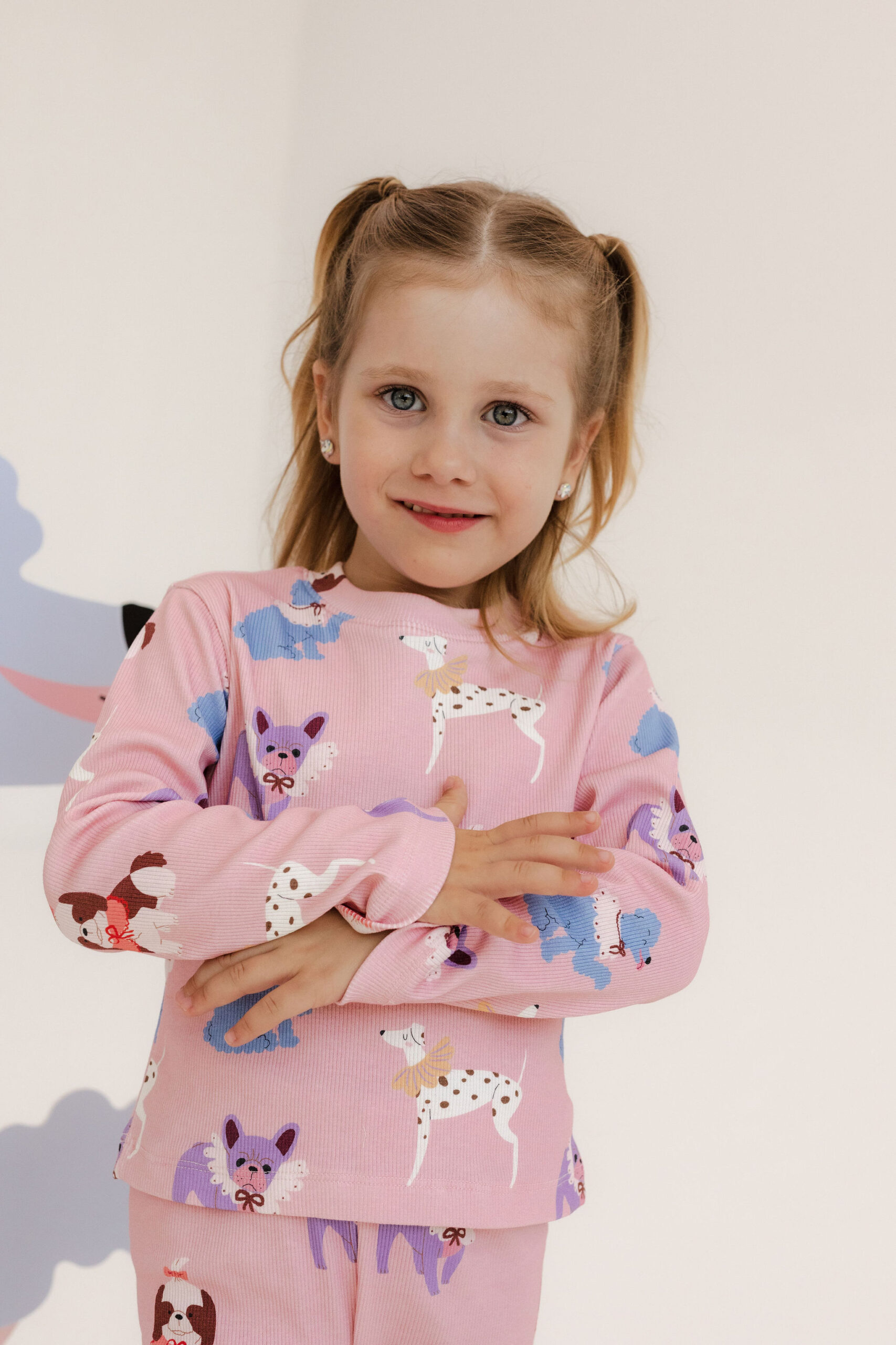 Koszulka „Pink Doggy Love” to urocza i wygodna propozycja dla każdej dziewczynki, która lubi styl z charakterem 🐶💗. Uszyta w Polsce z miękkiej dzianiny prążkowanej, idealnie dopasowuje się do sylwetki i zapewnia komfort noszenia przez cały dzień. Pastelowy róż z autorskim printem w słodkie pieski dodaje jej wyjątkowego uroku i sprawia, że każda stylizacja nabiera radosnego charakteru.