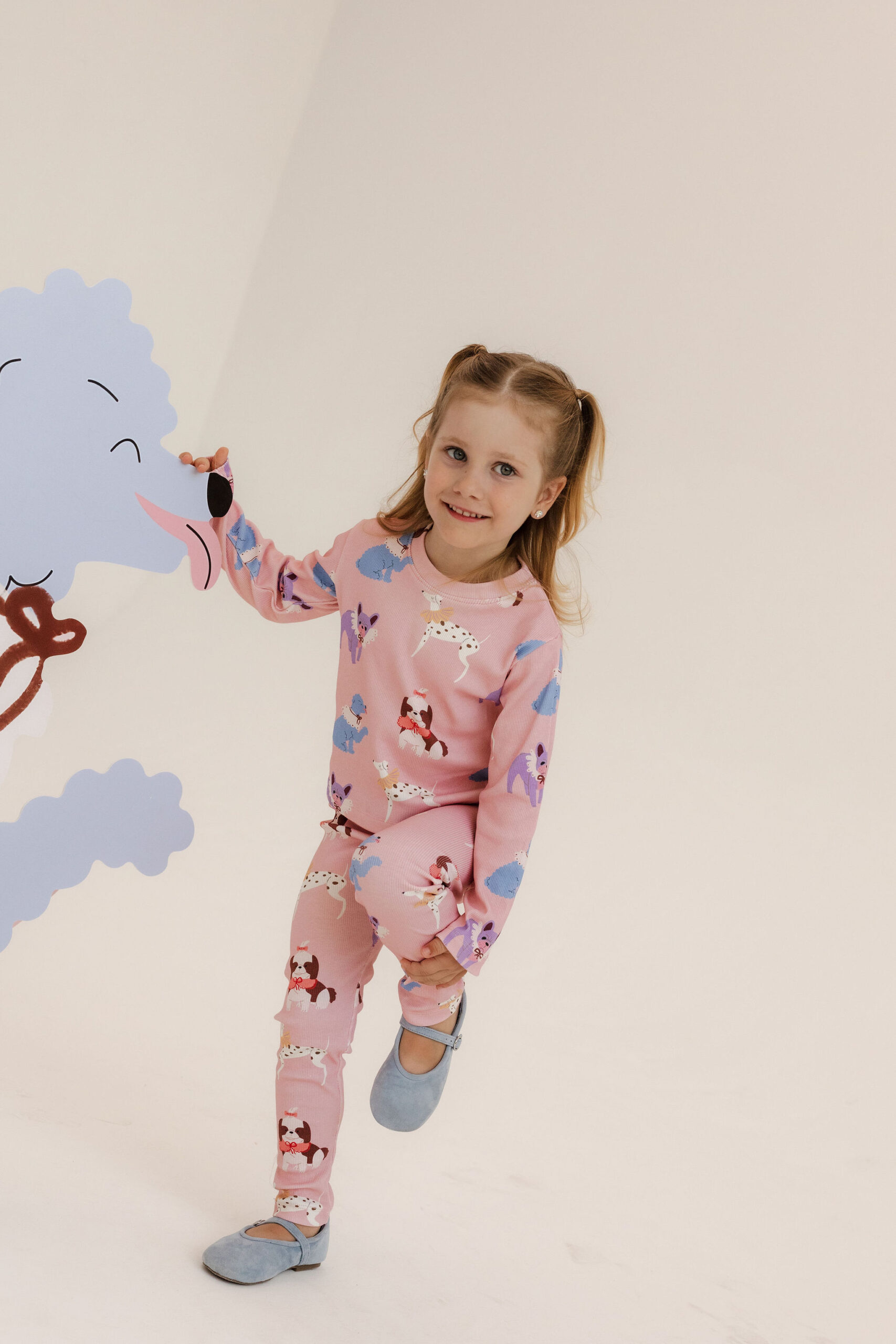Koszulka „Pink Doggy Love” to miękka, elastyczna i urocza propozycja w pastelowym różu z printem piesków, która łączy wygodę z dziewczęcym stylem.