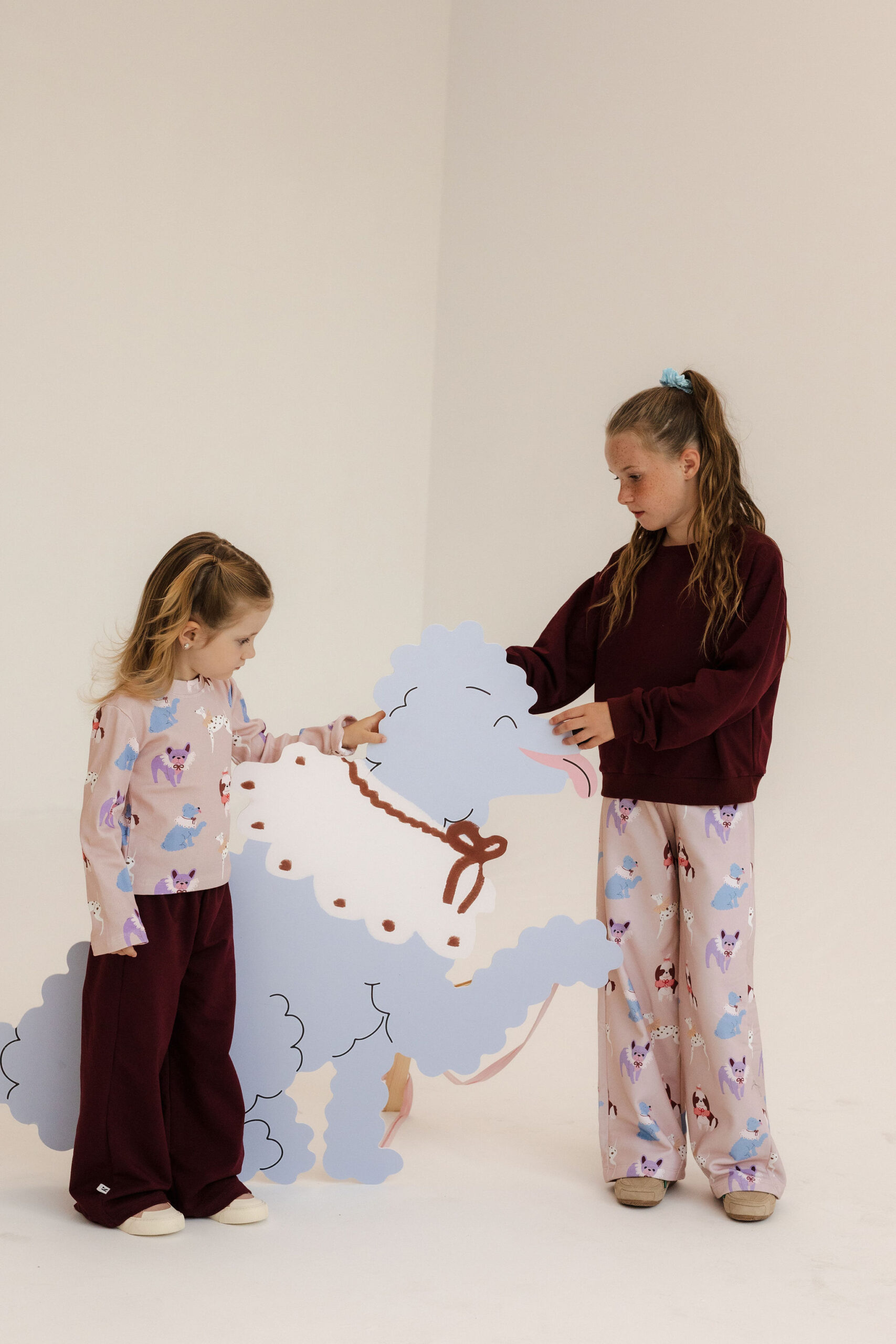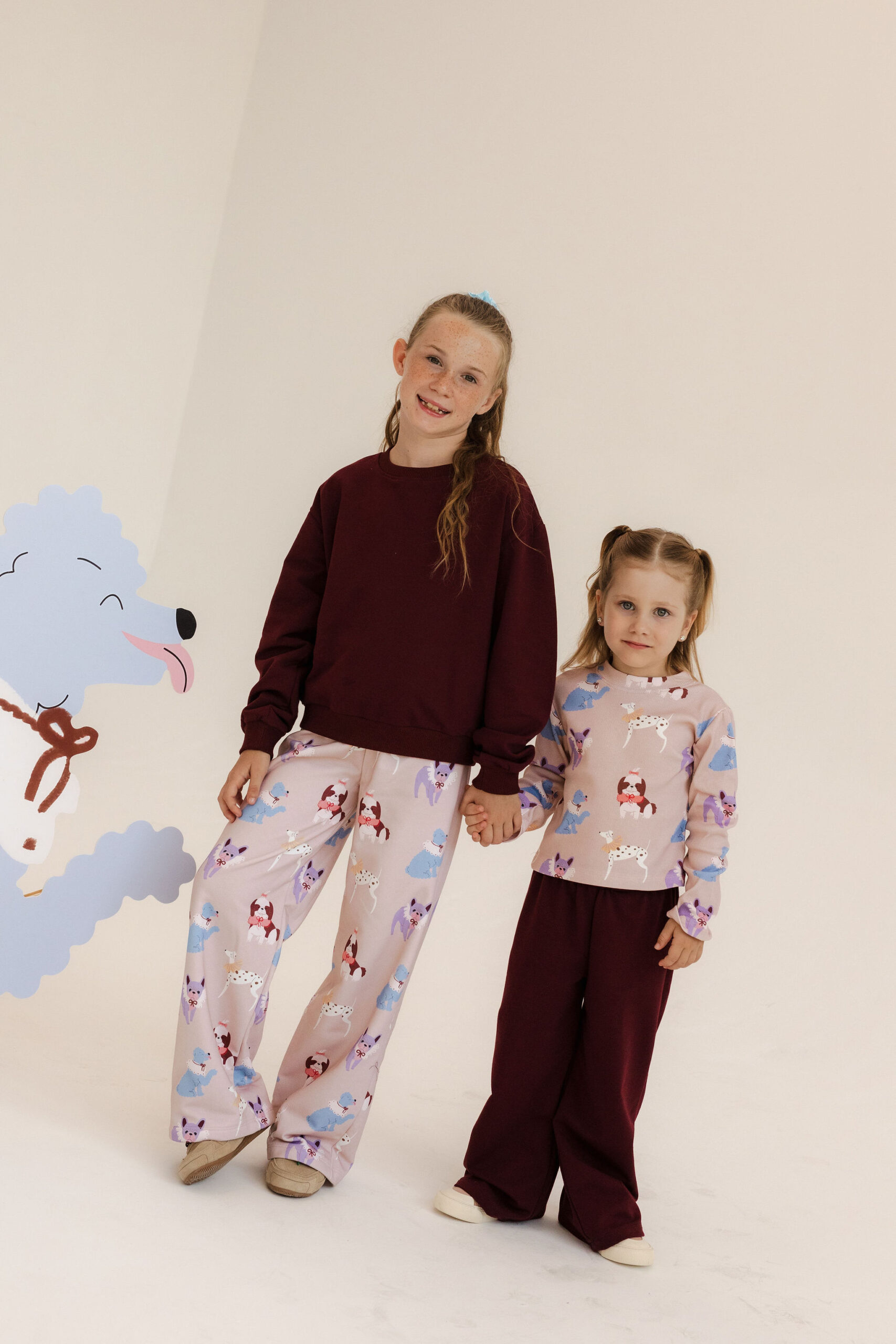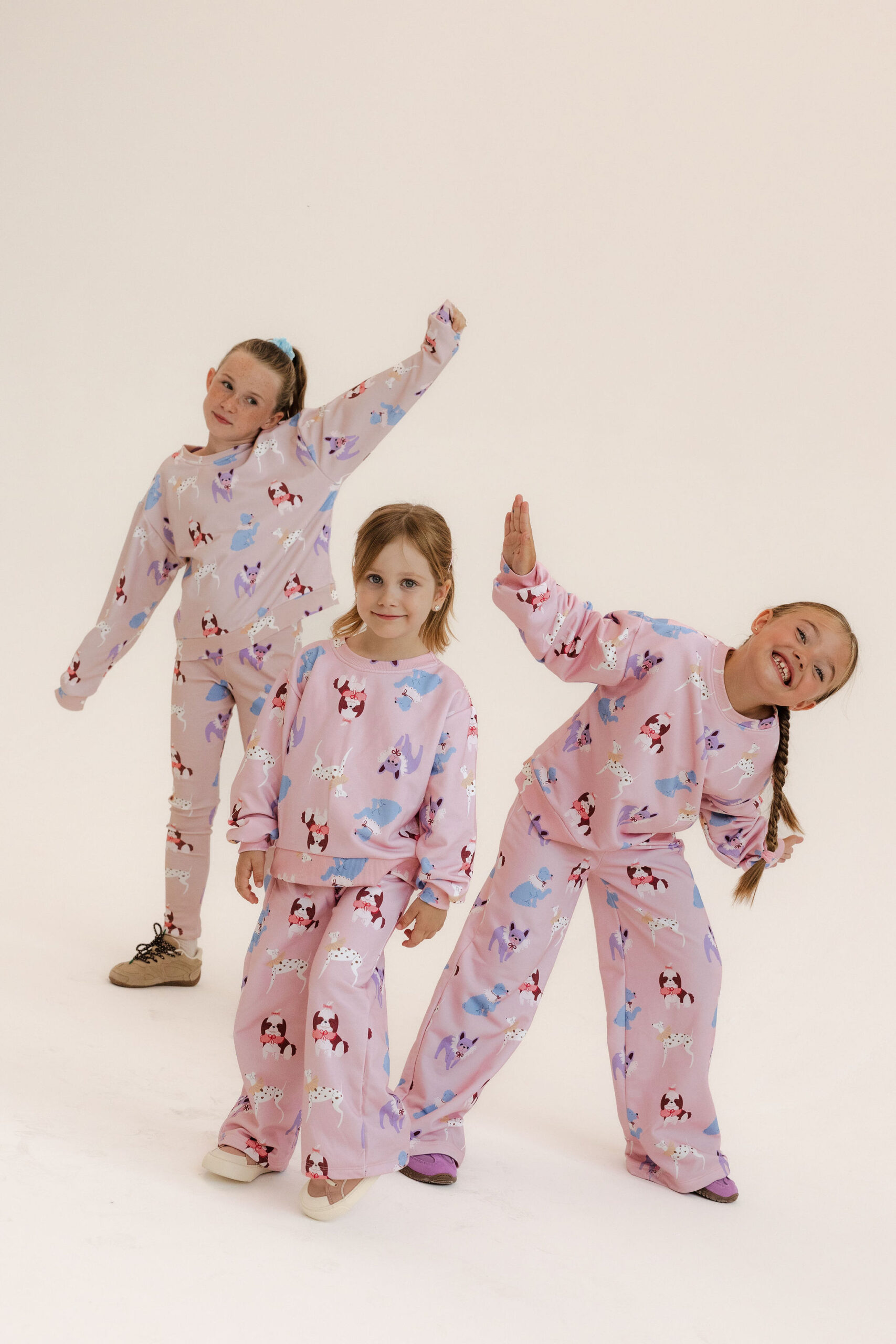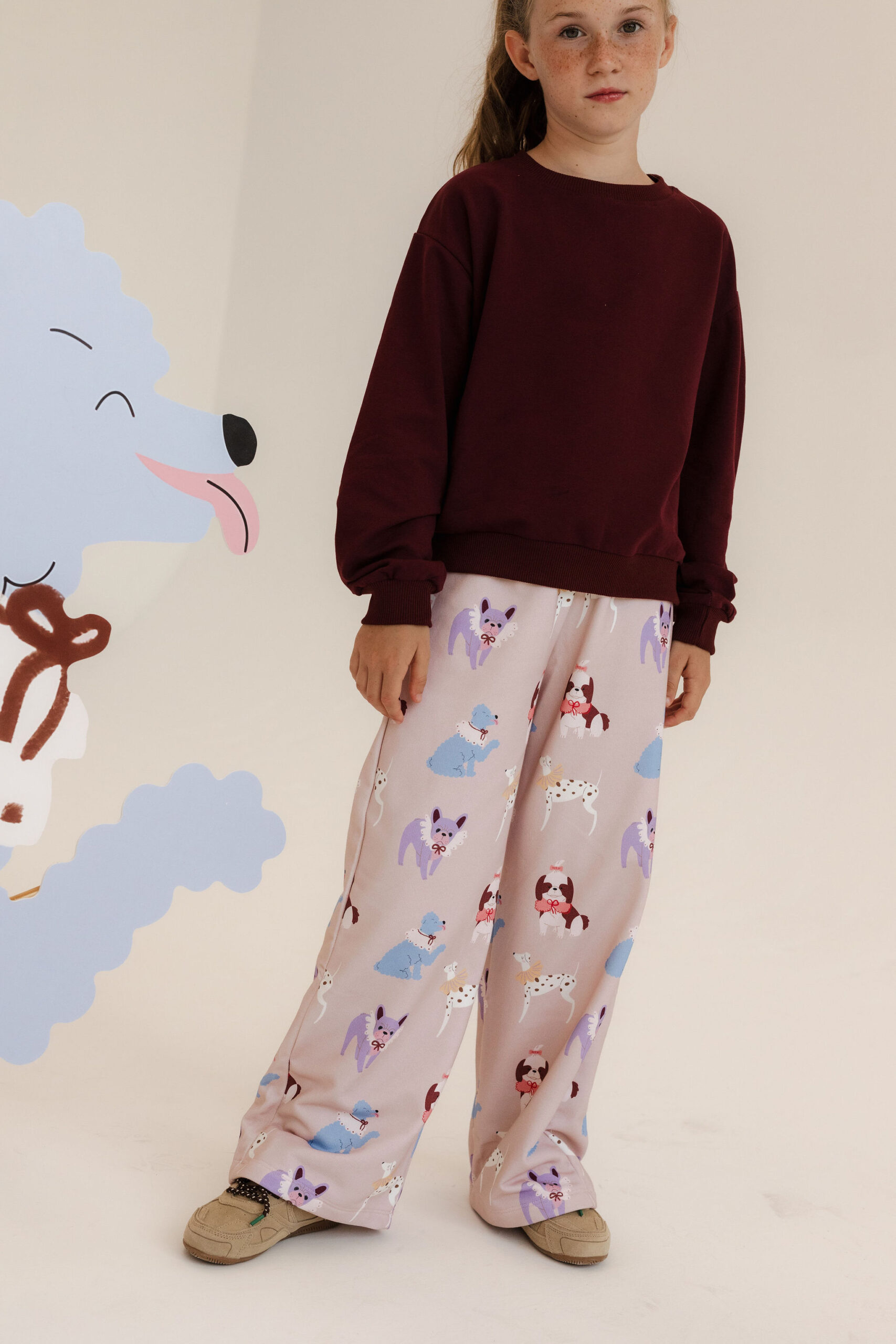 Kuloty „Beige Doggy Love” to połączenie wygody i dziewczęcego stylu. Uszyte w Polsce z miękkiej dzianiny dresowej (92% bawełna, 8% elastan), zapewniają komfort noszenia i pełną swobodę ruchów. Szeroka nogawka i elastyczny pas gwarantują idealne dopasowanie, a autorski print w pieski na pastelowym beżu nadaje im wyjątkowego charakteru. Kuloty sprawdzą się doskonale jesienią – do przedszkola, szkoły, na spacery i rodzinne wyjścia. Można je nosić solo lub w komplecie z pasującą bluzą, tworząc efektowny, wygodny zestaw.
