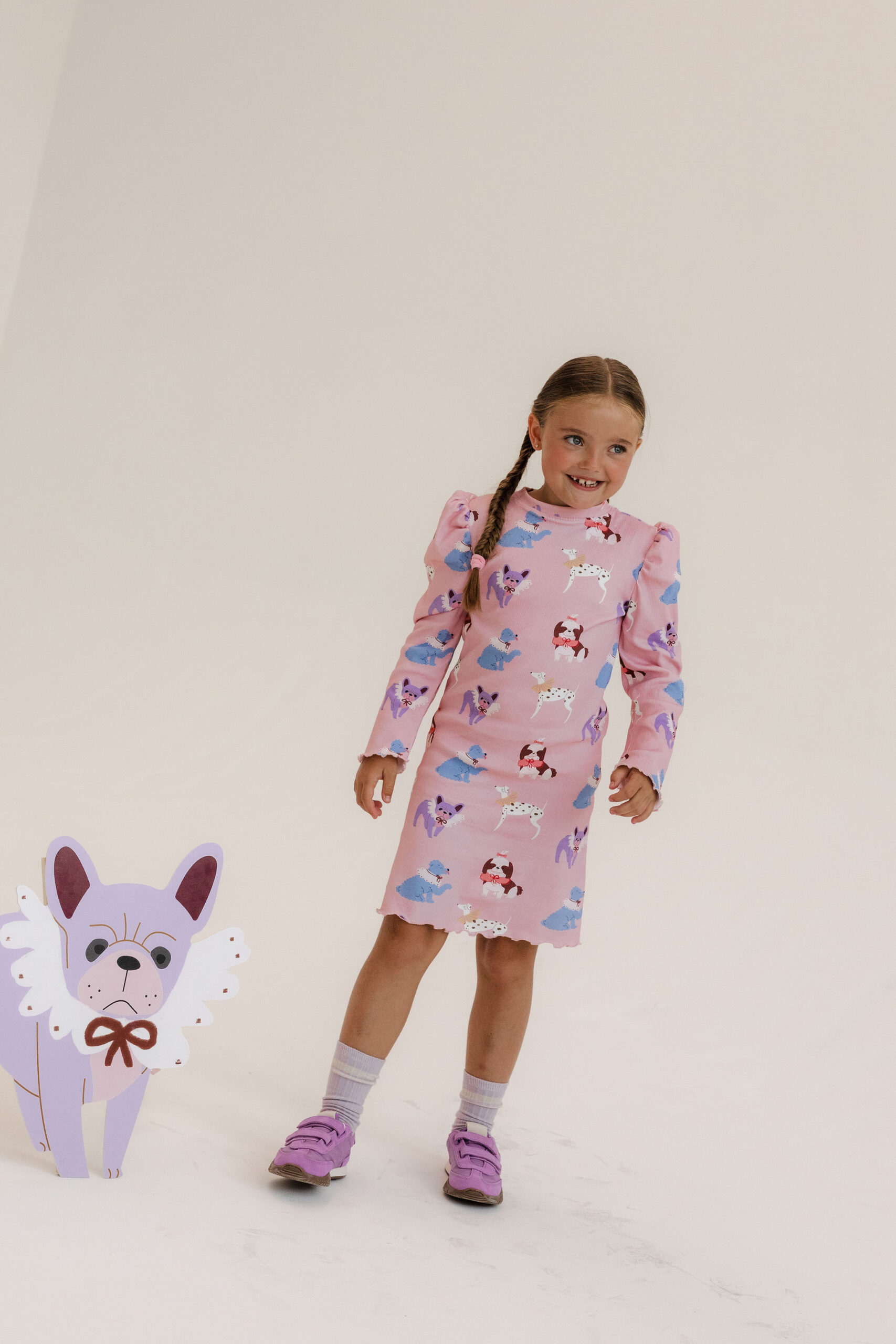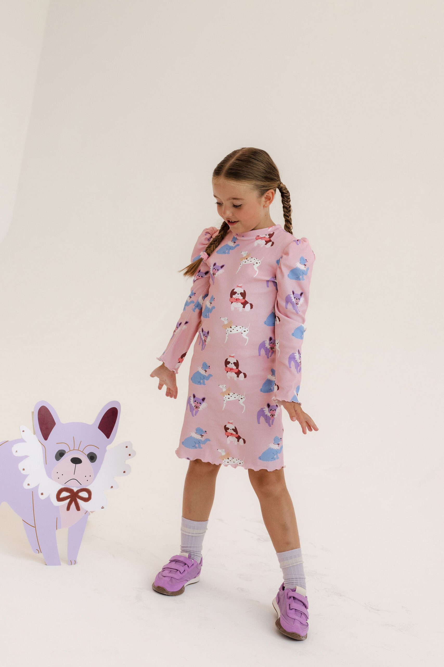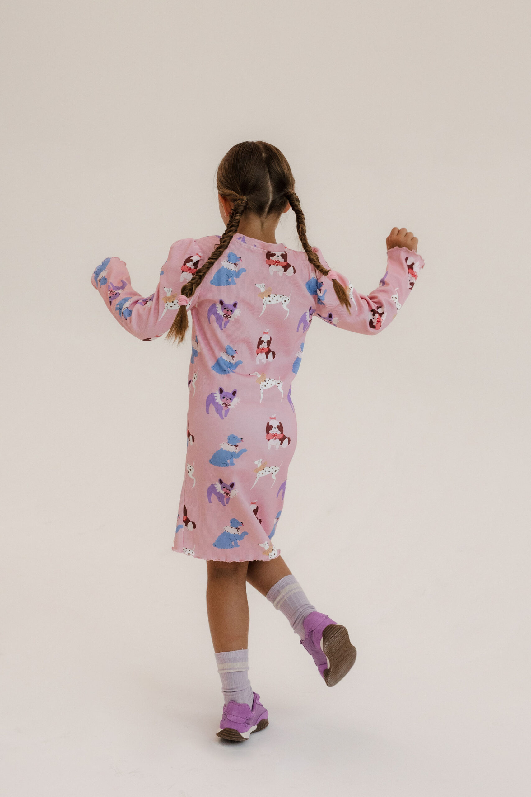 Sukienka Pink Doggy Love to połączenie wygody i dziewczęcego uroku w najlepszym wydaniu. Uszyta w Polsce z mięciutkiej dzianiny prążkowanej (98% bawełna, 2% elastan), zachwyca nie tylko komfortem noszenia, ale też wyjątkowym wyglądem. Autorski print w urocze pieski na pastelowym różu przyciąga spojrzenia i sprawia, że efekt WOW jest gwarantowany.