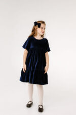 Przepiękna welurowa sukienka dla dziewczynki w granatowym kolorze od ByKrawcowa.